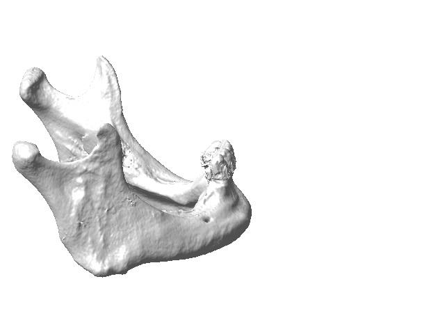Diese Dateien werden zu STL-Dateien konvertiert. Das STL-Format wird am meisten beim Ausdruck der 3D-prototypen benutzt. Während der Konversion werden alle Fehler und Artefakte entfernt. Figuren 3 und 4 veranschaulichen das Konversionsergebnis der Dateien DICOM zu STL.