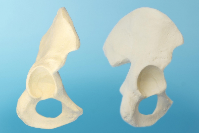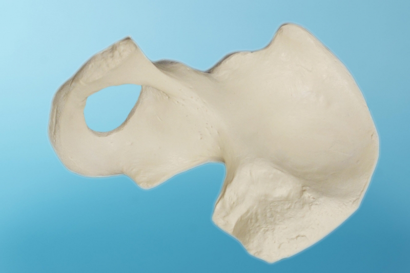 Kość miedniczna prawa z panewką stawową o średnicy 49 mm, wykonana w wersji materiałowej C przeznaczona między innymi do prowadzenia szkoleń z wymiany stawu biodrowego.