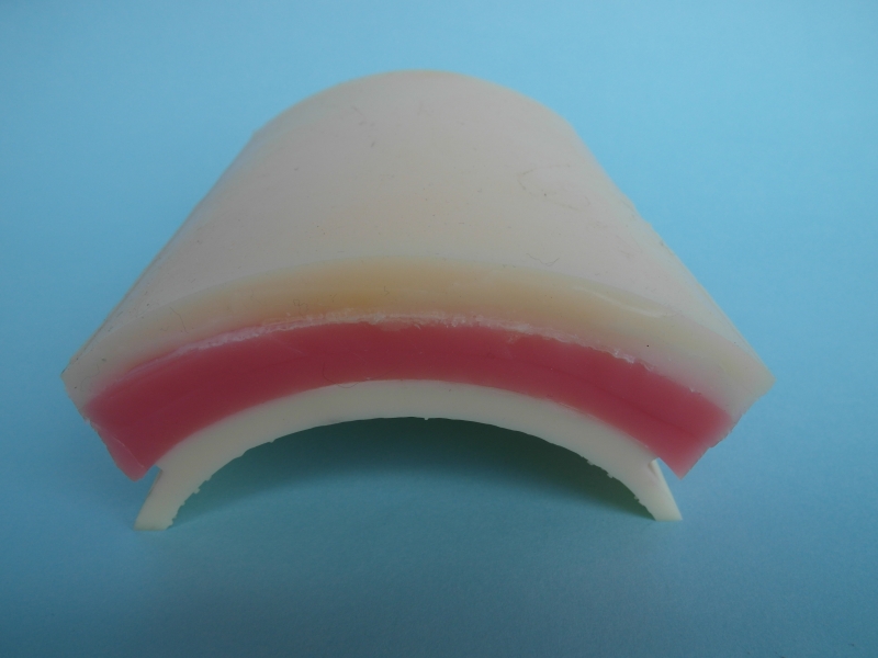 Model do nauki zakładania szwów oraz węzłów chirurgicznych. Zestaw przeznaczony jest do treningu technik nacinania i szycia chirurgicznego skóry. Fantom wykonany jest z miękkiej elastycznej warstwy skórnej nałożonej na rdzeń z imitacji tanki tłuszczowej i mięśniowej. Zapewnia realistyczne wrażenia zakładania szwów. Model posiada charakterystyczną strukturę skóry z widocznymi porami i pomarszczeniami. Miękki i podatny materiał gwarantuje, że szwy nie zostaną zerwane przy próbie naciśnięcia miejsca rany. Model można zszywać wielokrotnie. Po widocznym zużyciu skóry w miejscach zakładania szwów, można wykonać na modelu kolejne nacięcia w innych miejscach i prowadzać dalsze ćwiczenia. Wymiary modelu 140 mm x 100 mm x 60 mm. Numer katalogowy: 00-5000.