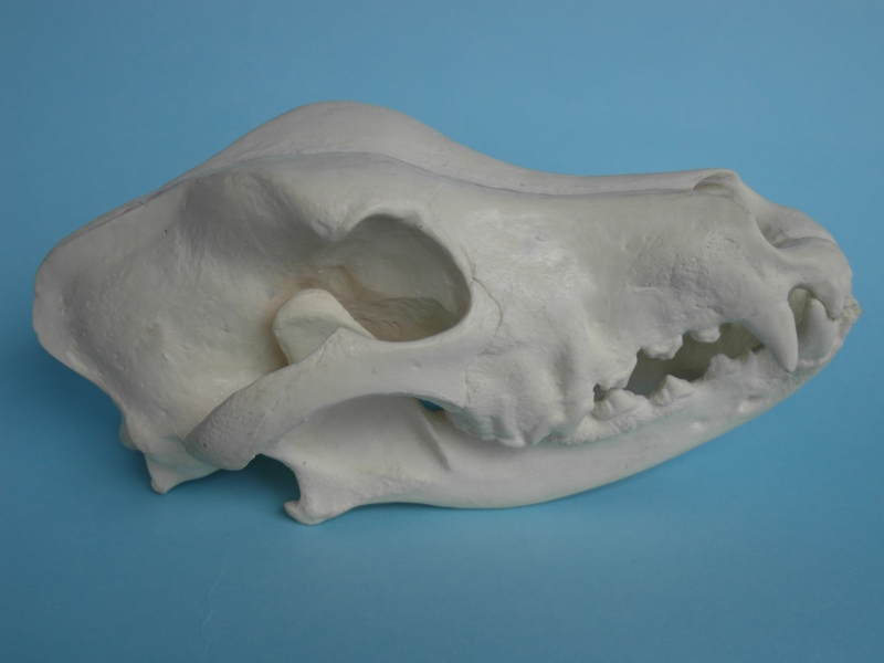 Ein großer Hund Schädel mit Kiefer auf Gummilagern. Länge von 130 mm. Ausführung Material C. Katalognummer CAN-01C